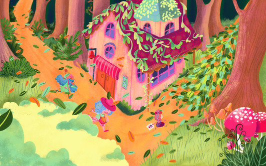 When I draw, I like to use both digital and traditional techniques. Both have a special place for me. For example, Flowery Poems was drawn using only watercolour. The naivety of the watercolour harmonised very well with the haiku-like little poems there. In the books The Insect Hotel or Chicken, Auntie and Me, the colours had to explode, because the stories were very lively and funny, so the digital technique was better. Besides that, one of my biggest passions is to keep a sketchbook and I think it helps me a lot to get to know the colours and improve my line, even if I work digitally at the end of the day.
